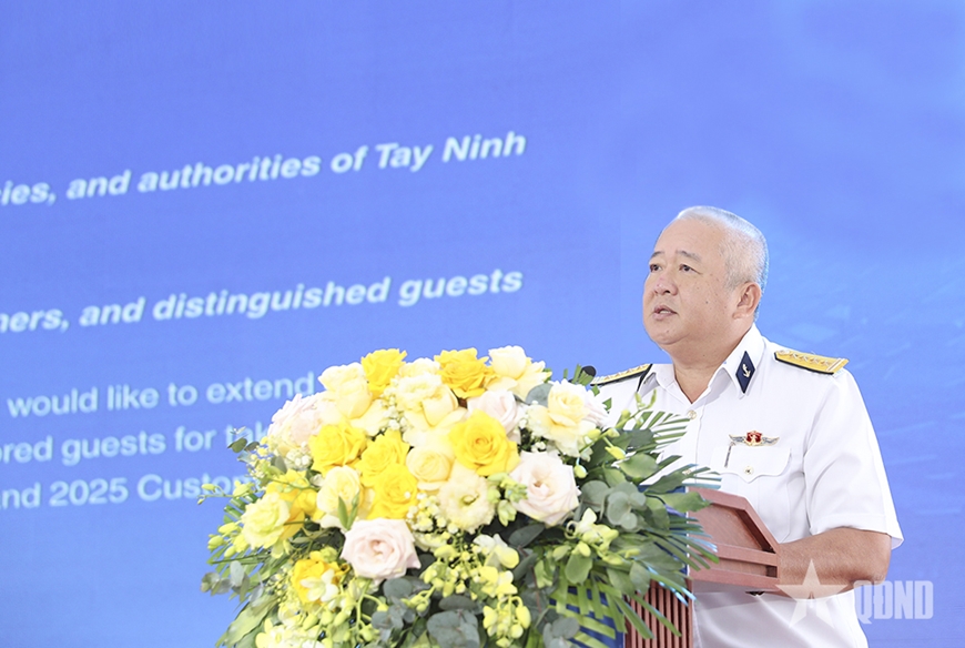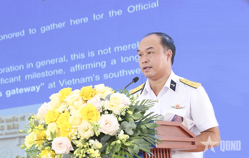 Trung tá Bùi Hải Dương, Giám đốc Công ty Cổ phần Tân Cảng-Tây Ninh phát biểu tại buổi lễ.