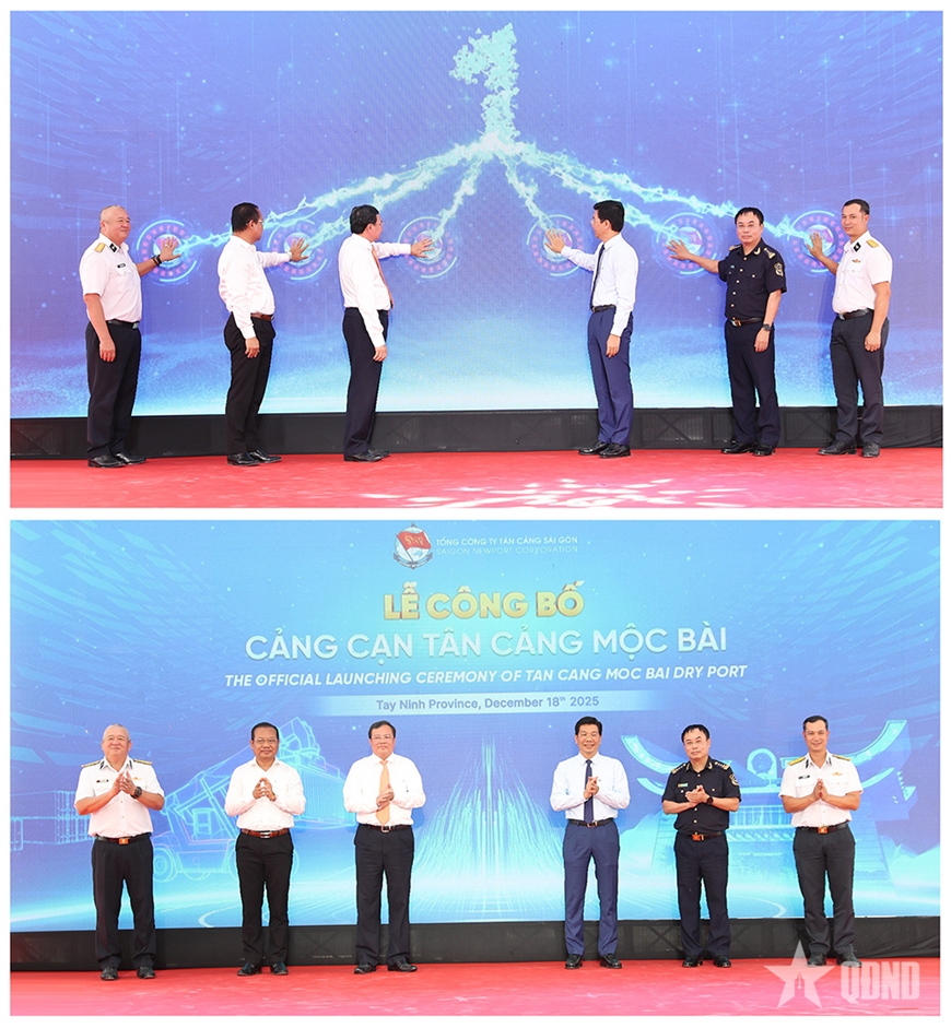 Sáng 18-12, tại Khu kinh tế cửa khẩu Mộc Bài (tỉnh Tây Ninh), Binh đoàn 20 - Tổng công ty Tân Cảng Sài Gòn tổ chức Lễ công bố chính thức đưa Cảng cạn Tân Cảng Mộc Bài vào vận hành, đánh dấu một bước tiến quan trọng trong chiến lược phát triển hạ tầng logistics và thương mại xuyên biên giới giữa Việt Nam và Campuchia.