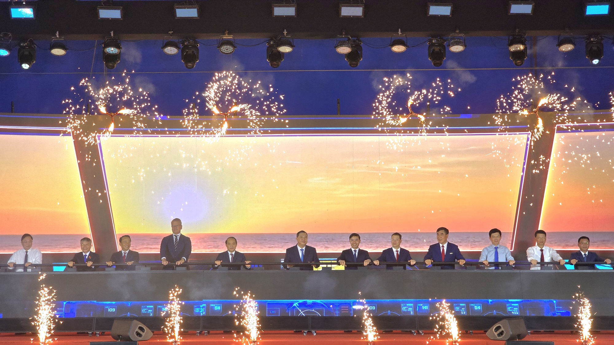 Các đại biểu thực hiện nghi thức khởi công dự án bến cảng container Liên Chiểu.