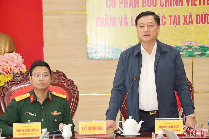 Phát biểu tại buổi làm việc, Bí thư Đảng ủy, Chủ tịch HĐND xã Đức Thọ Trần Hoài Đức khẳng định, buổi làm việc đã mở ra cơ hội hợp tác chiến lược giữa chính quyền địa phương và Viettel Post, hướng tới mục tiêu phát triển kinh tế - xã hội, thúc đẩy công nghiệp, dịch vụ, thương mại và vận tải; tạo động lực thúc đẩy, xây dựng xã Đức Thọ thành một trung tâm trung chuyển hàng hóa quan trọng của khu vực phía Bắc Hà Tĩnh.
