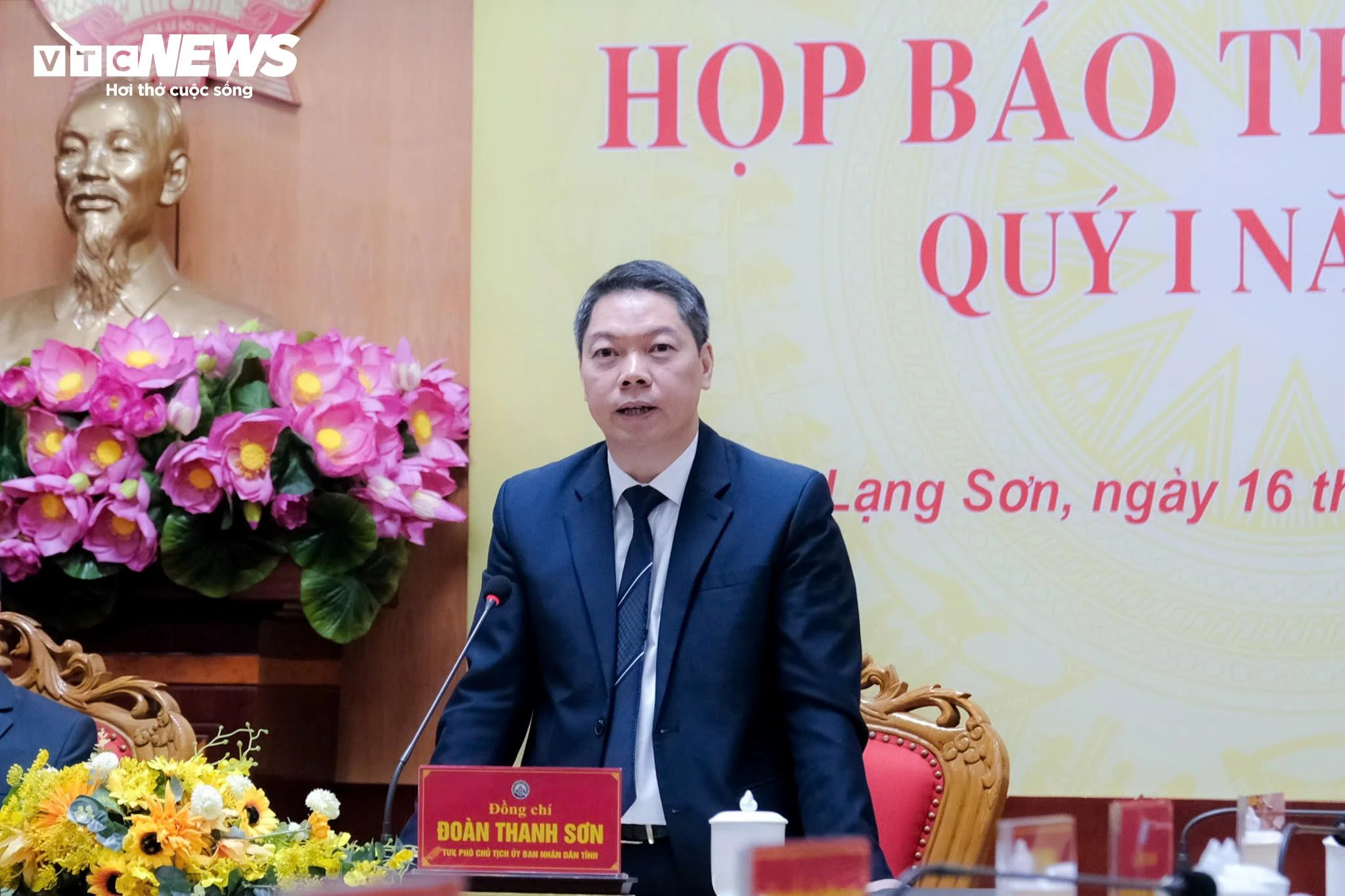Ông Đoàn Thanh Sơn, Phó Chủ tịch UBND tỉnh Lạng Sơn thông tin tại buổi họp báo.